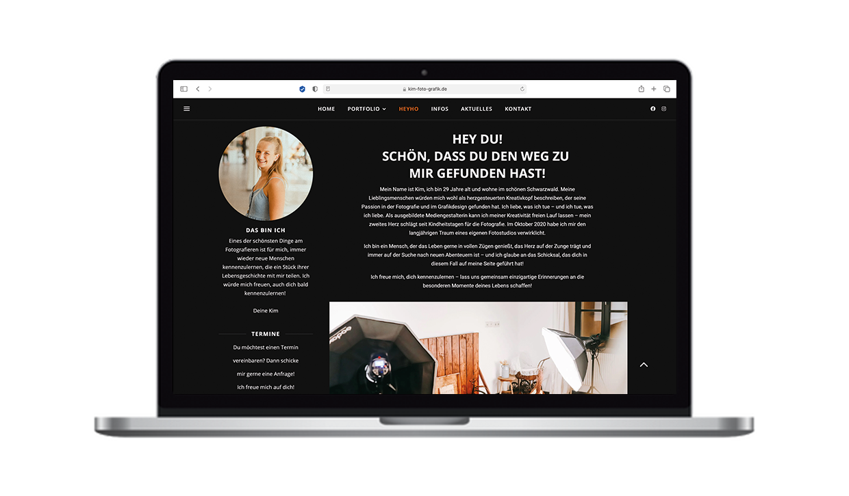 Sie möchten besondere Momente für die Ewigkeit festhalten? Kim Aberle fängt sie für Sie ein – emotional und authentisch – damit Sie auch in Jahren noch eine schöne Erinnerung daran haben! Im Oktober 2020 hat sich Kim den langjährigen Traum eines eigenen Fotostudios verwirklicht. Zu finden ist sie in der schönen Altstadt von Hüfingen.